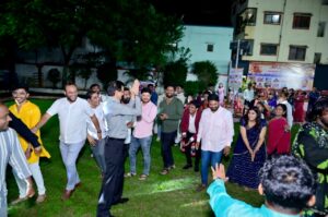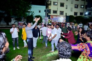 [शिरूर येथे पाथफाईंडर फाउंडेशन चे अध्यक्ष, मनसे जिल्हाध्यक्ष ऍड.स्वप्निल भैय्या माळवे यांनी आयोजित केलेल्या “जलसा द नवरात्र उत्सव” (फेस्टिवल) 2025 या कार्यक्रमाच्या निमित्ताने देशाचे दानशूर उद्योगपती, शिरूर नगरीचे सभागृह नेते, मा.नगराध्यक्ष प्रकाश भाऊ रसिकलाल धारीवाल” यांनी गरबा दांडिया चा धरला ठेका.]